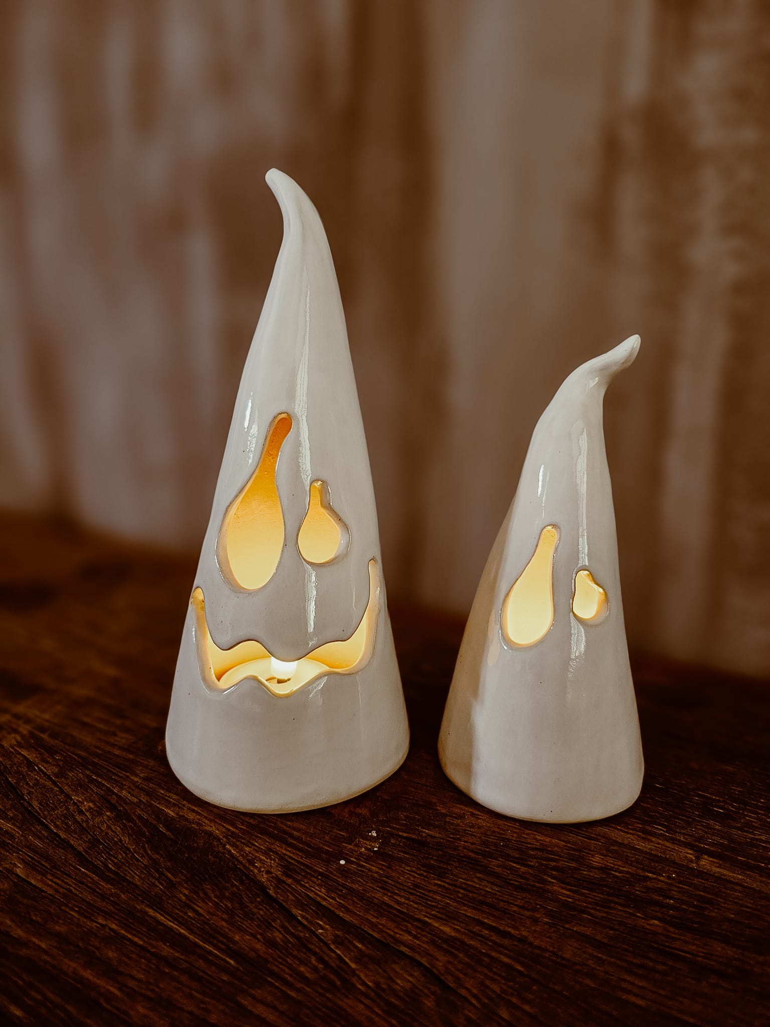 Set van twee schattige spookjes. Perfect als decoratie of om een speelse toets aan je interieur te geven. Leuk met een ledlampje onderin.